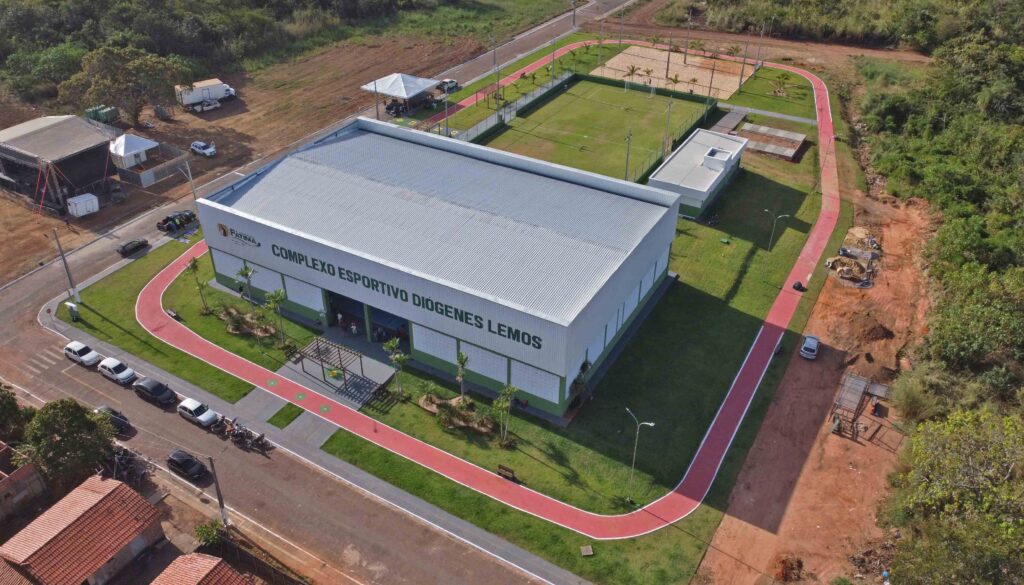 A estrutura conta com quadra de futsal coberta, banheiros, pista de caminhada, campo de futebol society e quadra de areia.