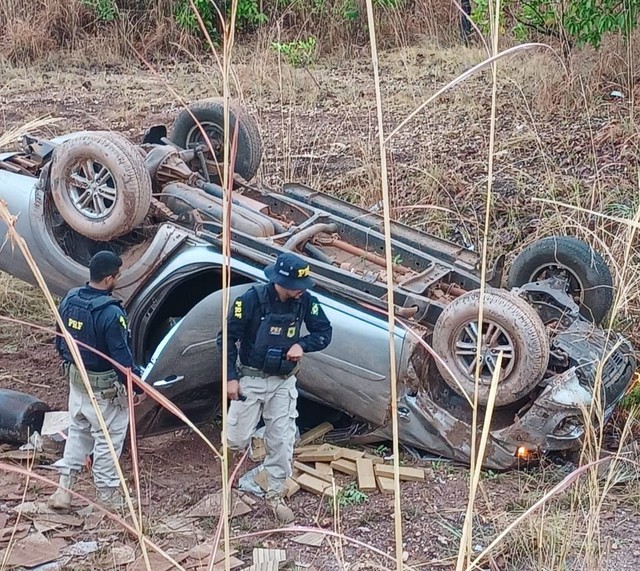 Motorista é preso em diligência da Polícia após capotagem de caminhonete roubada com 418 kg de maconha no Tocantins