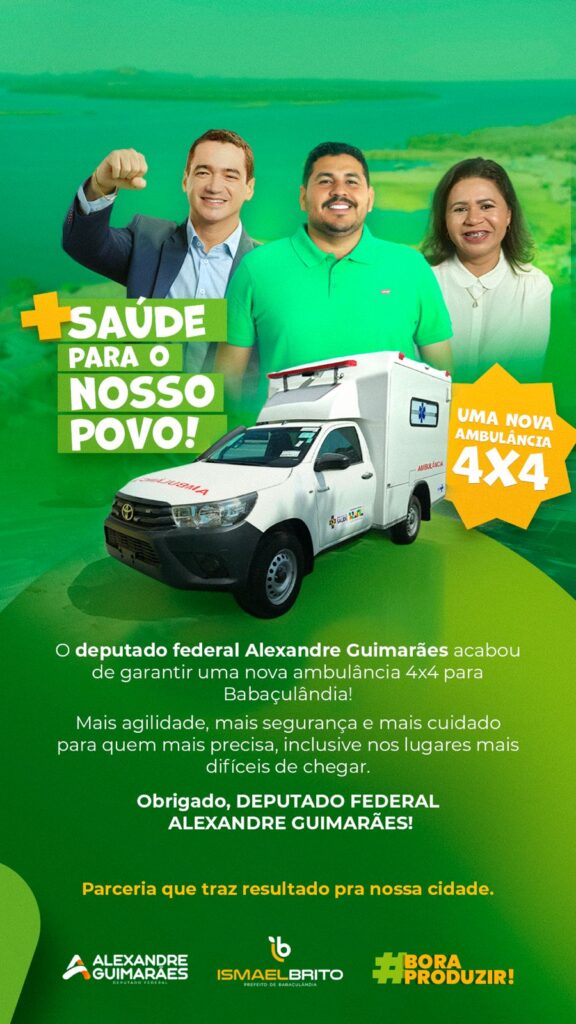 Babaçulândia, uma cidade que historicamente enfrentava sérios desafios na área da saúde acaba de celebrar um passo significativo rumo a melhorias nos serviços de emergência. O Prefeito Ismael Brito anunciou que o deputado federal Alexandre Guimarães disponibilizou a aquisição de uma nova ambulância 4×4 para a região, um investimento que promete transformar o atendimento médico e salvar vidas.