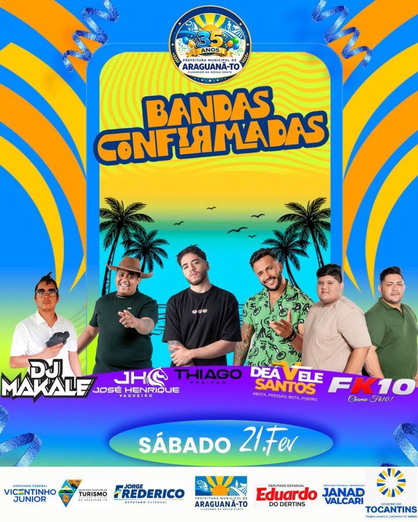 O município de Araguanã se prepara para viver um dos momentos mais aguardados do ano, que é a comemoração dos seus 35 anos de história com dois dias de muita música, alegria e celebração. A programação especial acontece nos dias 20 e 21 de fevereiro e promete reunir moradores, visitantes e turistas em uma grande festa popular.