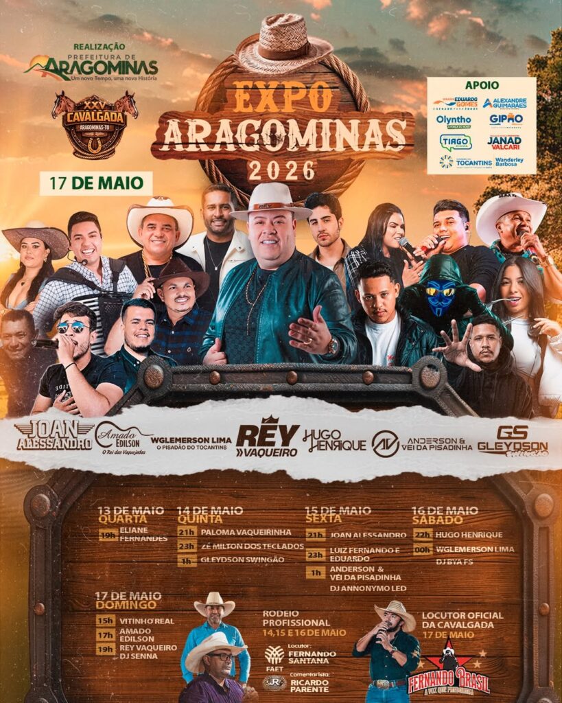 A cidade de Aragominas está se preparando para receber um dos eventos mais aguardados do ano: a ExpoAragominas. Nos dias 13 a 17 de maio, a festa promete trazer muita emoção e celebrar a rica cultura da região, com uma série de shows e uma tradicional cavalgada que reunirá amantes da música e da tradição.