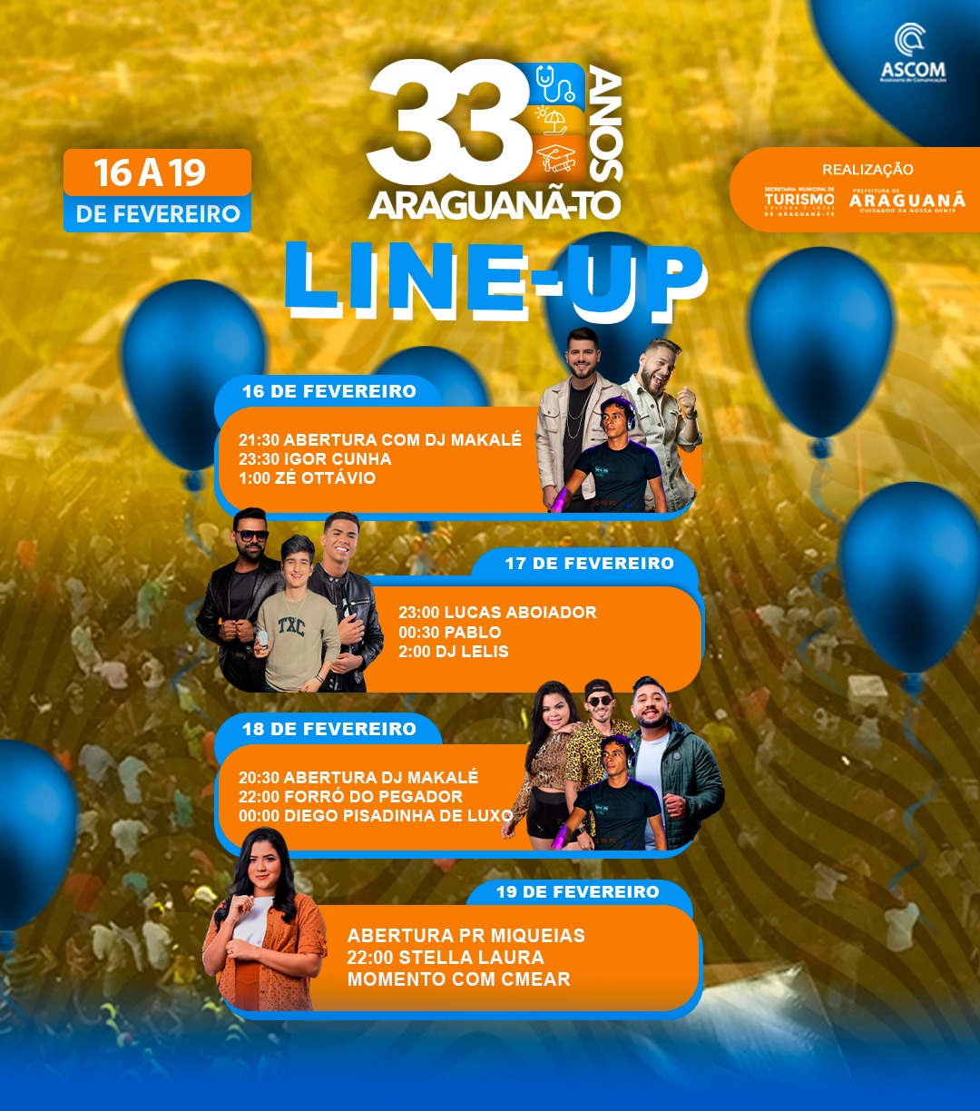 Shows e louvor, entre os dias 16 e 19 de fevereiro, são destaques para celebrar o aniversário de Araguanã