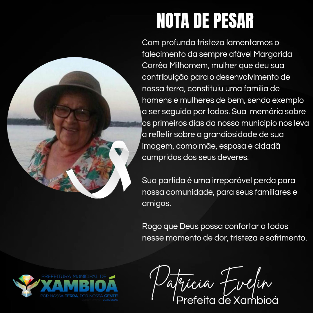 A Prefeita Patrícia Evelin destacou a importância da trajetória de Dona Margarida para o desenvolvimento de Xambioá Após o falecimento da Pioneira de Xambioá, Margarida ...